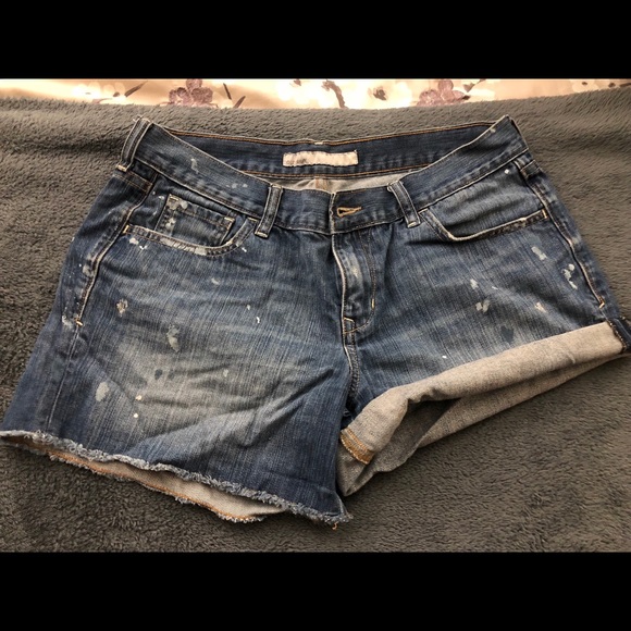 Jean shorts with paint splatter detail