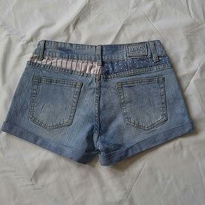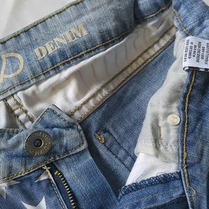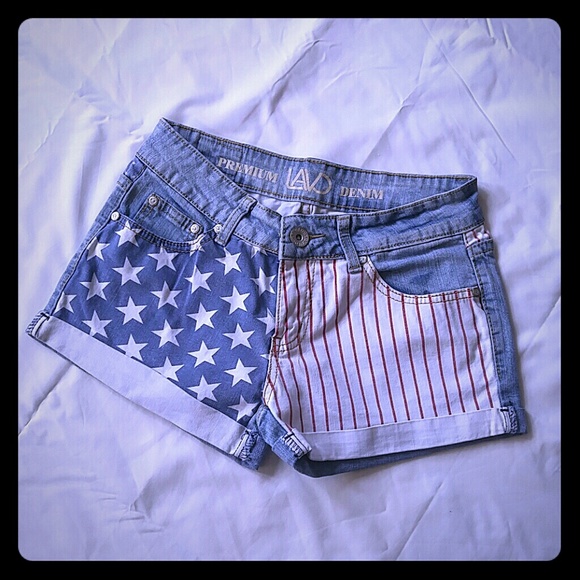 Shorts, patriotic denim cuffed shorts, zip front, 5 pockets, gently worn excellent condition, 98% Cotton, 2% spandex