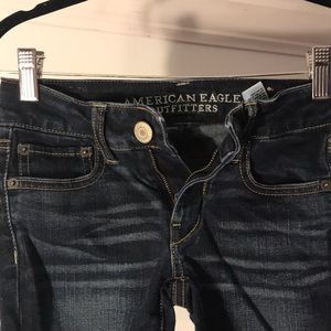 Dark blue shorts. Bought with the style of loose thread at the bottom. Above the knee. Great condition.
