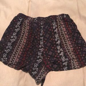 Navy blue, patterned flowy shorts from Hollister. Super cute with a body suit or even with a sweater