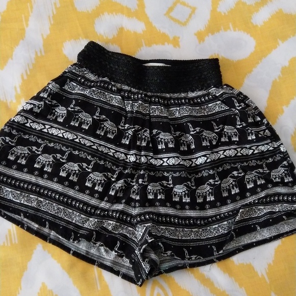 Black and white Asian elephant print shorts from the h&m coachella collaboration*h&m sizes run small like 1 or 2 sizes.