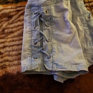 Faded short shorts crisscross stretch material