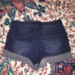 Blue jean shorts with cute button up detail! Most likely fit around a 4-6 as I wear both sizes