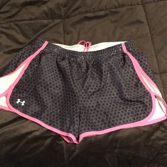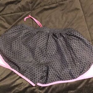 Very cute gray and pink. Has a metallic hexagon pattern that shows when moved. Sized medium but do run small