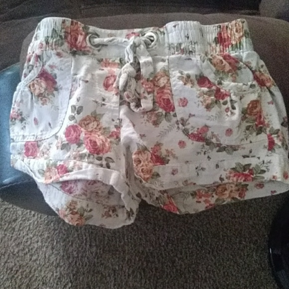 Nice summer shorts that have flowers on them with a rope to tie their too big