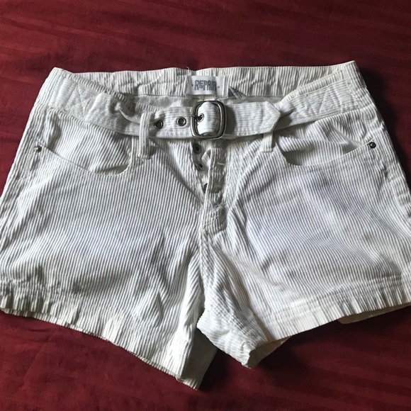 Corduroy button fly white shorts. Super cute with sewn in buckle / belt.