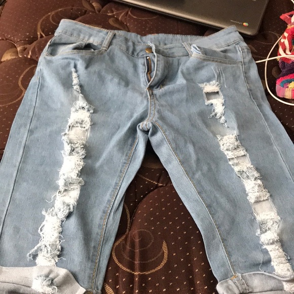 Light blue jean ripped Bermuda shorts in a size medium. Have not been worn. $15 or best offer