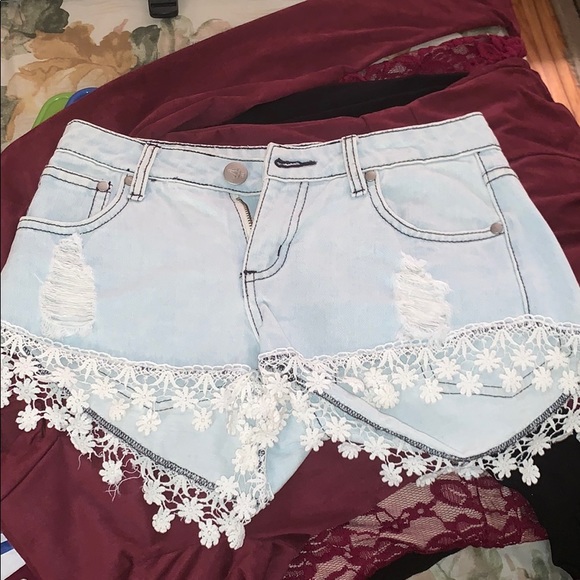 Fringe flower jean shorts