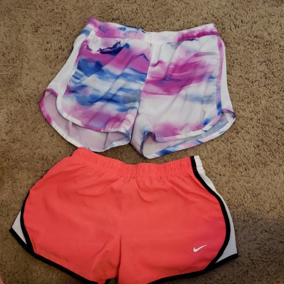 Pink Nike shorts size kids medium . Selling for 10$ and purple and white shorts are old navy selling for 5$ size large. The Nike ones have a small pocket in the back.