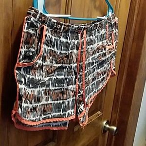 Black white and orange shorts with stretch waist band and drawstring with front pockets