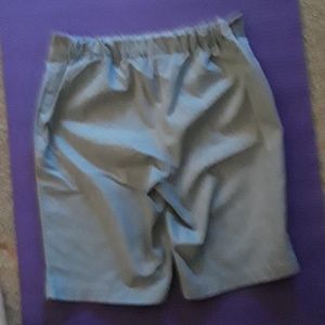 Back side elastic waist, small striped, blue and white, no pocket shorts.