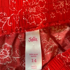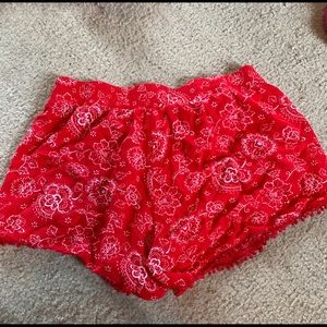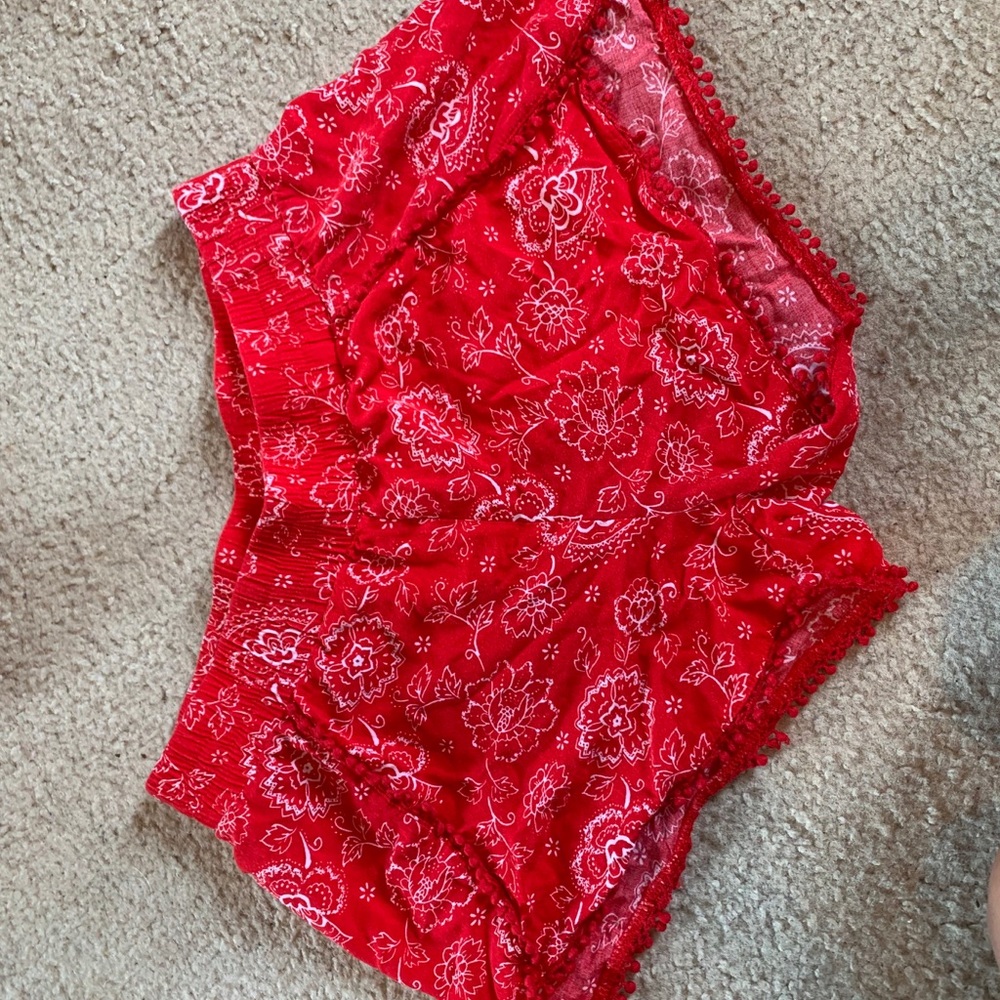 Red shorts with white flowers! It’s a 14 in a kids clothing store so it’s a regular small