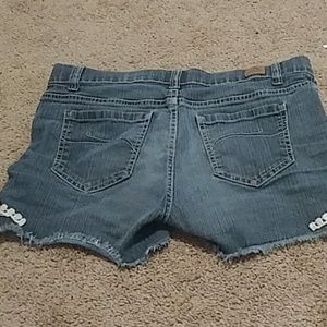 They are Jean shorts with white flowers on the bottom and a nice cut at the bottom