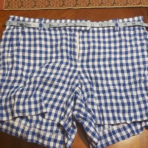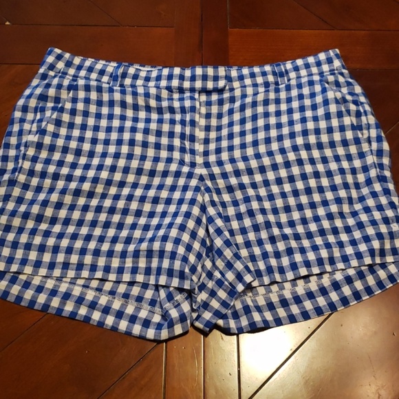 J. Crew, blue/white checkered shorts, size 8 with side and back pockets. Gently used with mo stains or rips.