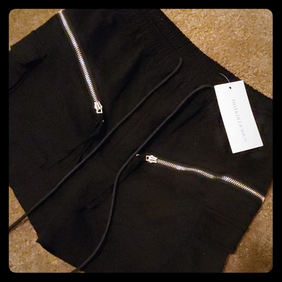 Black zipper shorts With side pocket