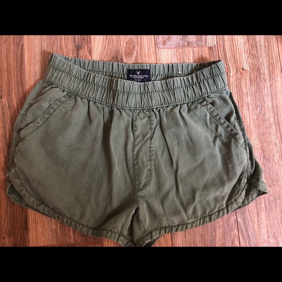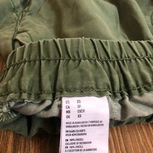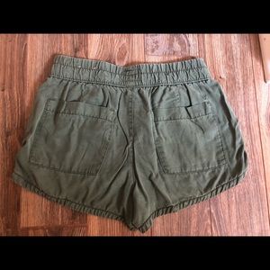 Super cute, gently worn paper bag style shorts. They are army green in color and size XS from American Eagle. Hug you at the wait with a cinched accent but hang looser in your bum/thighs.