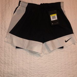 Super cute black and white nike shorts perfect for running or going to the gym!!! Built in compression shorts!!! NEVER WORN!!!