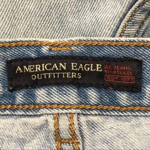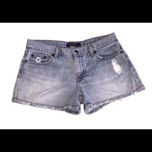 Distressed denim cut off jean shorts by American Eagle Outfitters.