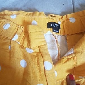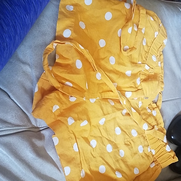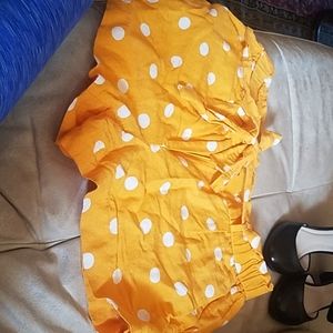 Absolutely cute yellow and white linen polka dot shorts, with a tie