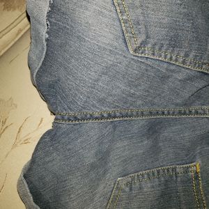 Size Medium, worn down shorts, jean fabric kinda streched out in some areas, other than that no holes. The frayed edges by the folded up part are from the manufacturer, which they didn't seal off at the folded part.