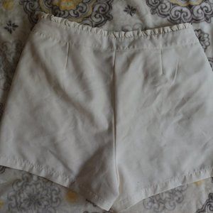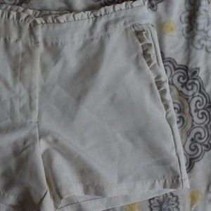 Mid-rise ruffled white shorts; comfy material Front pockets only Worn twice