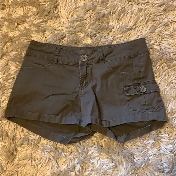 They are a dark olive green color, I love them they just don’t fit anymore. They have only been worn twice, but are comfortable.