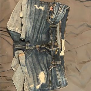 Distressed blue jean shorts