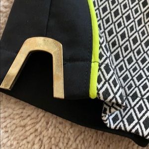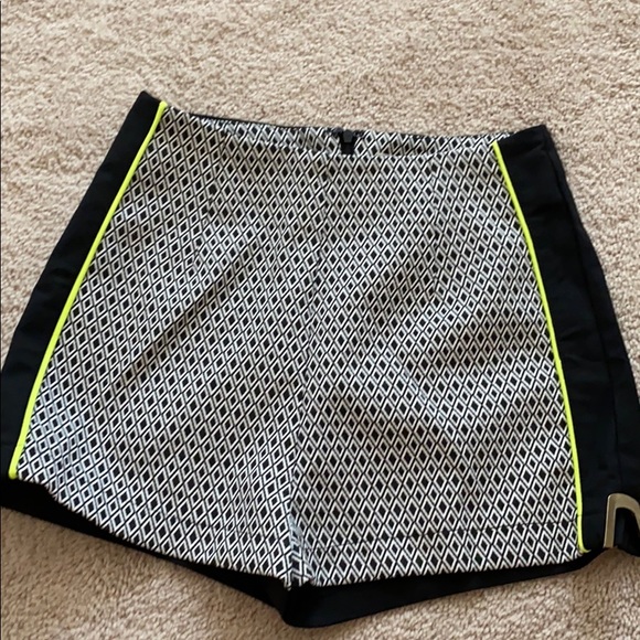 Black and white with a hint of neon green. Brand new shorts With metal on sides Zipper in the back