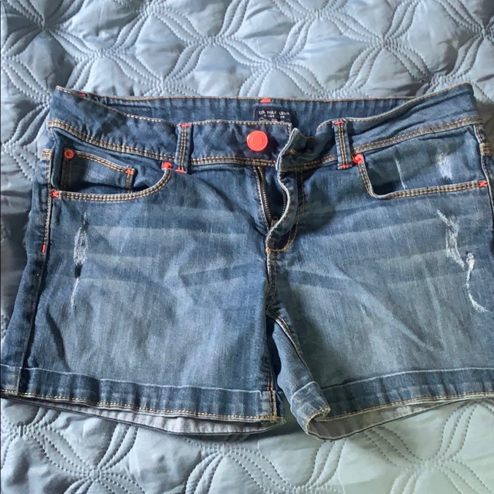 3” inseam is polo shorts good condition. Neon pink accent!
