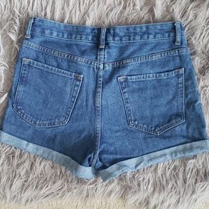 Blue, Jean shorts. I loved these, but sadly they no longer fit, i wore these once only for a trip to FL. I love the fabric because its thick , & the Zipper compartment has buttons so you dont have to worry about your walmart being open LOL