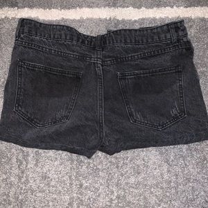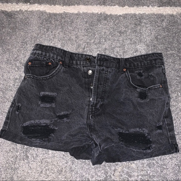 High waisted black distressed shorts