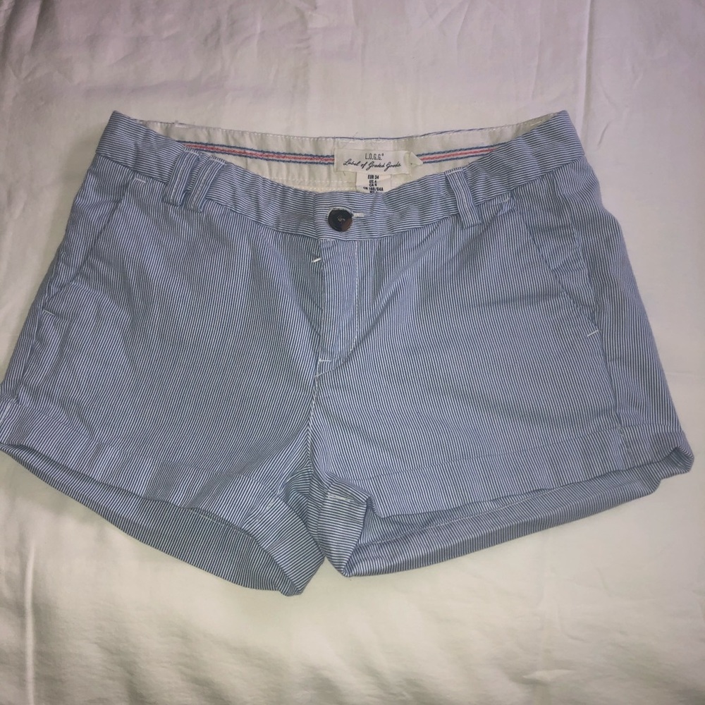 Blue and white striped shorts. Cute and comfortable!