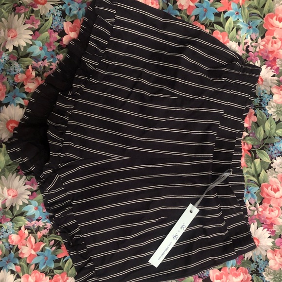 She & Sky dress shorts - navy blue and white pin striped - fully lined - 60% cotton / 40% polyester