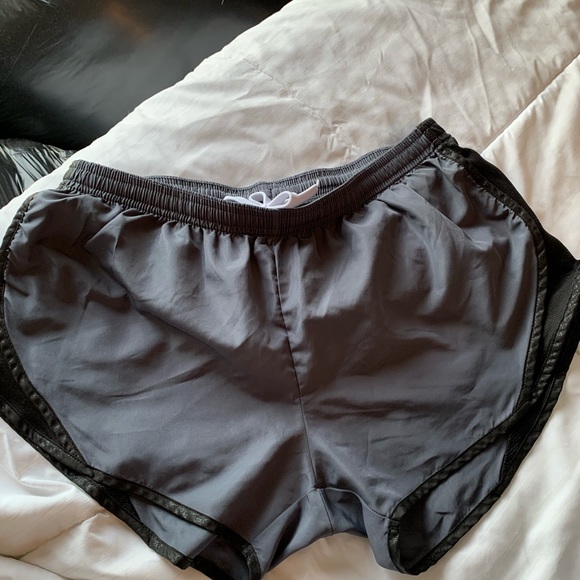 Gray and black athletic shorts. Built in panties
