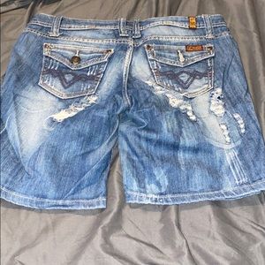3/4 Distressed jean shorts with rhinestones (a couple missing rhinestones)