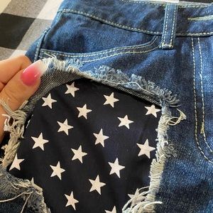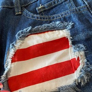 American flag denim shorts. Fit high waisted just a tad bit. Will do any offer!