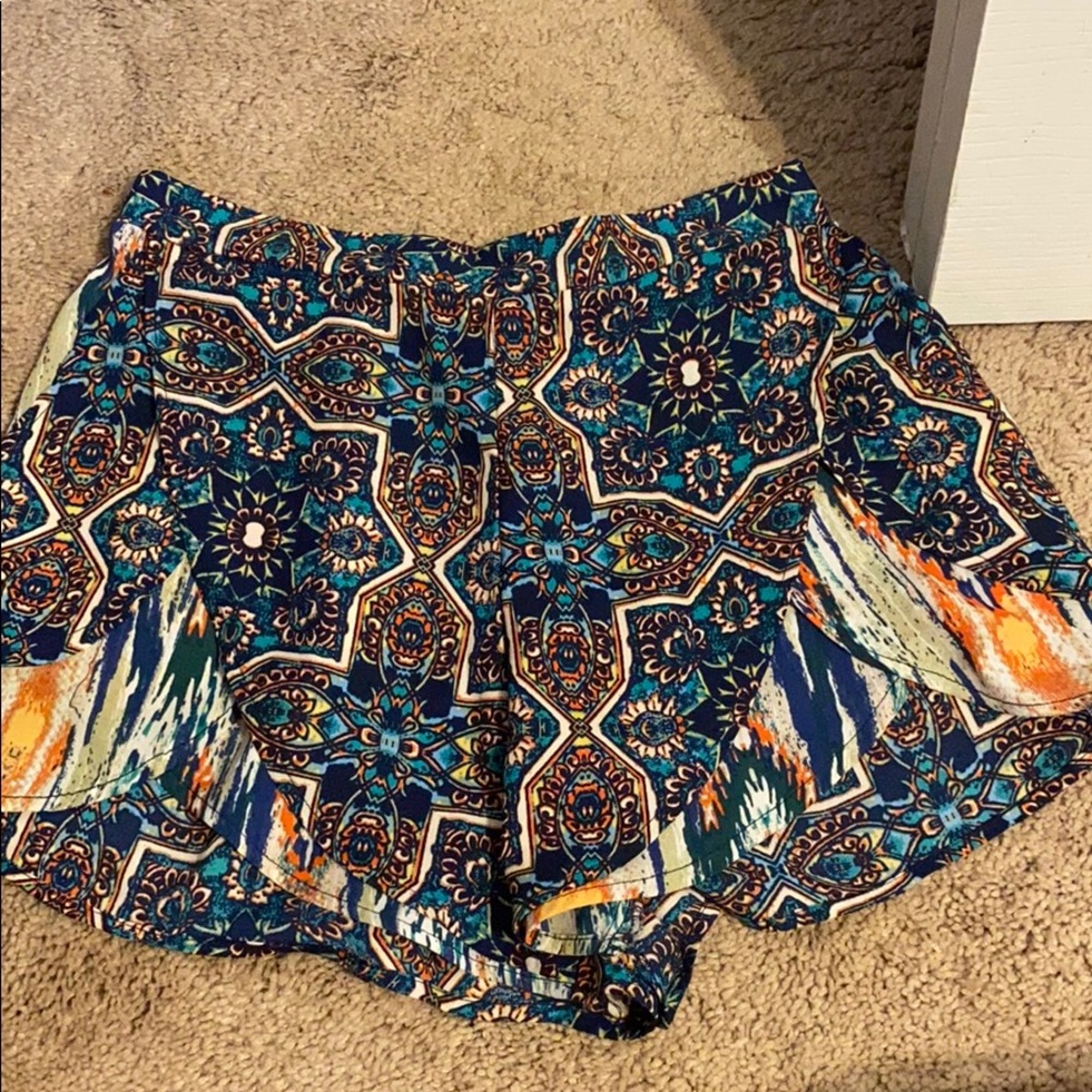 Colorful shorts-100% polyester. With strechy back waistband. Have different design underneath that you can see in a side slit