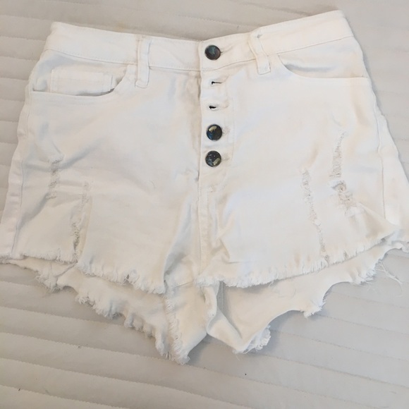 White ripped shorts. High waisted and button up. Great condition