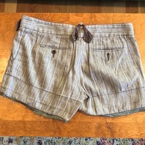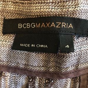 Brown and tan, linen, cotton blend shorts from BCBGMAXAZARIA. Gently used. Size 4. No smoking household. Button closure. 4 pockets.