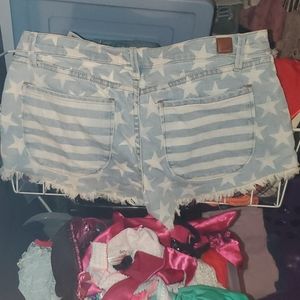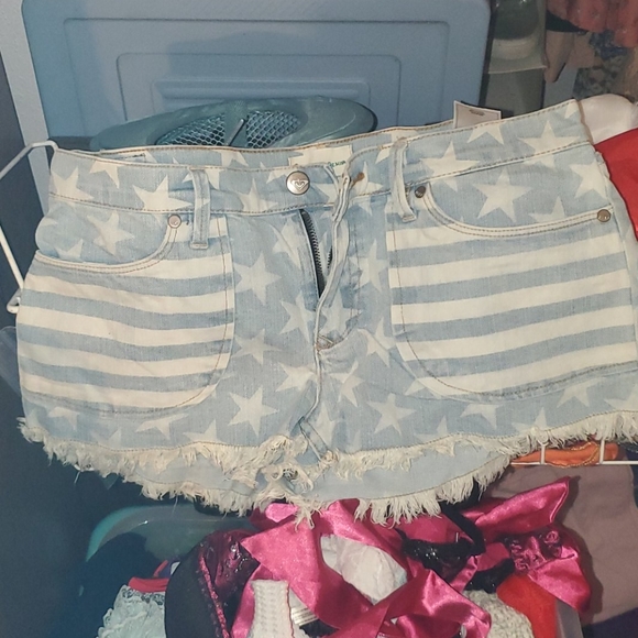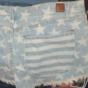 Stars and stripes Roxy jean light blue cut off shorts