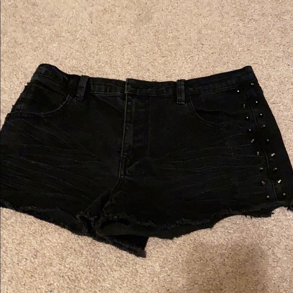 Black studded side jean shorts