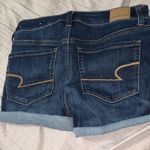 Cute dark blue Jean shorts. They have a little stretch to them. Size 6. Slightly worn
