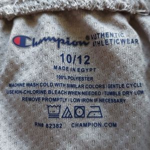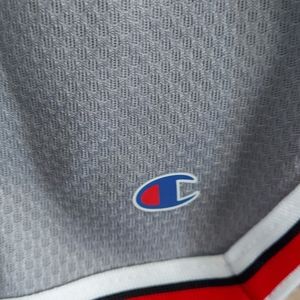 Champion shorts gray with red, black and white stripes with pockets.