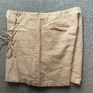 Burnt yellow high waisted zip up on side shorts with ties up the front