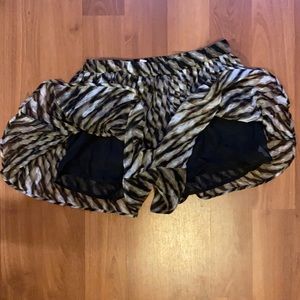 Shorts: 2nd picture shows these are shorts but when wore looks like a skirt. New without tags Black, taupe, gray print Side zipper closure