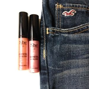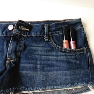 Distressed dark wash Hollister five pocket Women's shorts. Comes with two bonus (New) lip colors.