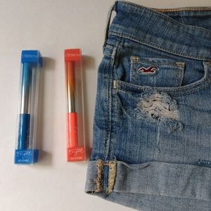 Distressed, hemmed Women's Hollister shorts that are used but in excellent condition. Comes with two bonus Brand New Neon eyeliners.