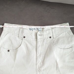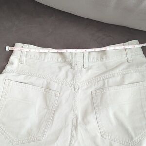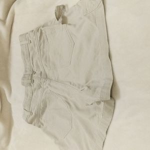 Denim beige shorts. high waisted.width 14' wide . 3'1/2 crouch. length 14'.