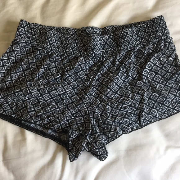 Soft rayon shorts Black trim on bottom and slits on both sides Waistband 15.5 inches Total length 12 inches