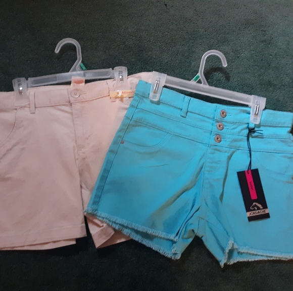 NWT 2 pairs of size 16 girls shorts. 1 pair or khaki and 1 pair of blue